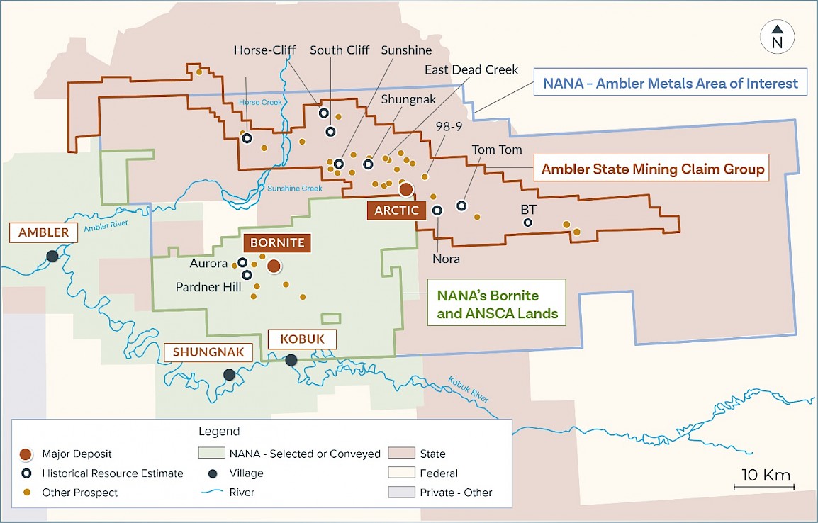 The Upper Kobuk Mineral Projects (“UKMP”) consists of a 471,796-acre land package containing state, patented and native lands within an area of interest. The two most advanced projects are the feasibility-stage Arctic copper-zinc-lead-gold-silver volcanogenic massive sulphide (“VMS”) project and the Bornite copper-cobalt carbonate replacement project.